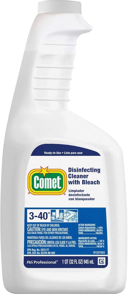 Comet Classic Cleaners offers a wide variety of cleaning solution for every room of your home. The easy-to-use liquid provides deep cleaning as it deodorizes plus the angled neck gets the cleaner under the toilet rim for better results. Up to 7 cash back Comet Disinfecting Cleaner Spray With Bleach 32 Oz Bottle Case Of 8 1 Trigger per case.