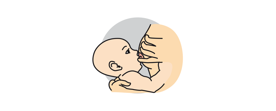 Sobald das Baby den Mund weit öffnet zieht die Mutter es schnell nah zu sich heran und unterstützt so das korrekte Erfassen der Brust. Dann tippe mit der Brustwarze sanft an die Unterlippe oder das Kinn Deines Babys. Lege Dein Baby in etwa in Position und umgreife es mit einem Arm.