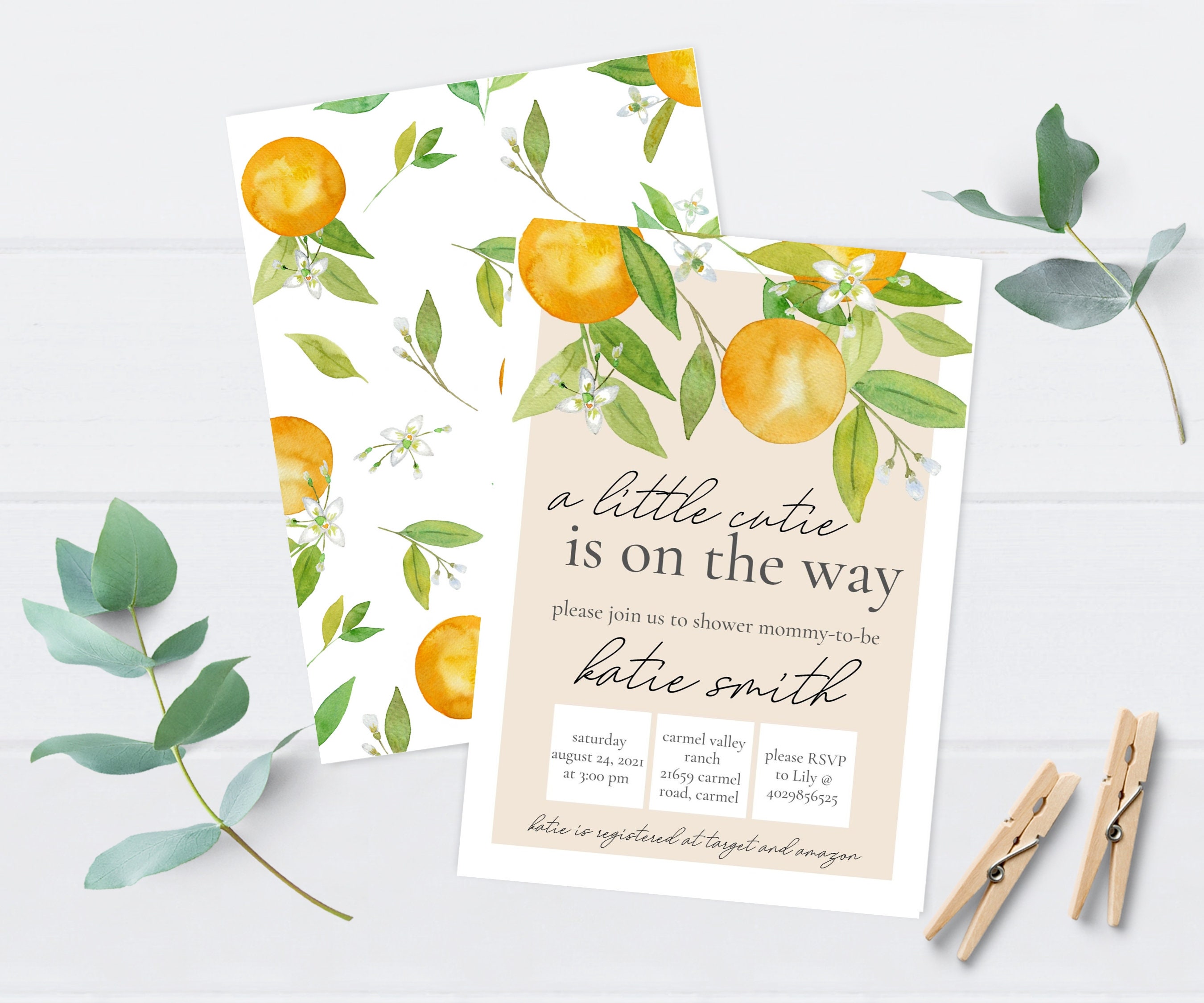 See more ideas about baby shower orange baby shower baby shower themes. Perfect for a boho moon themed baby shower in navy and gold. The package includes 1 little cutie is on the way banner. When a little cutie is on the way a baby shower is a must and this banner is a deliciously sweet way to decorate. Complete your citrus-themed baby shower with our large selection of clementine baby shower printables. You will absolutely love this Baby Shower Guest Log Book that will go perfectly with your themed baby shower. 1 orange theme garland. Download now to personalize and print instantly or textemail to your guests. A little cutie is on the way.