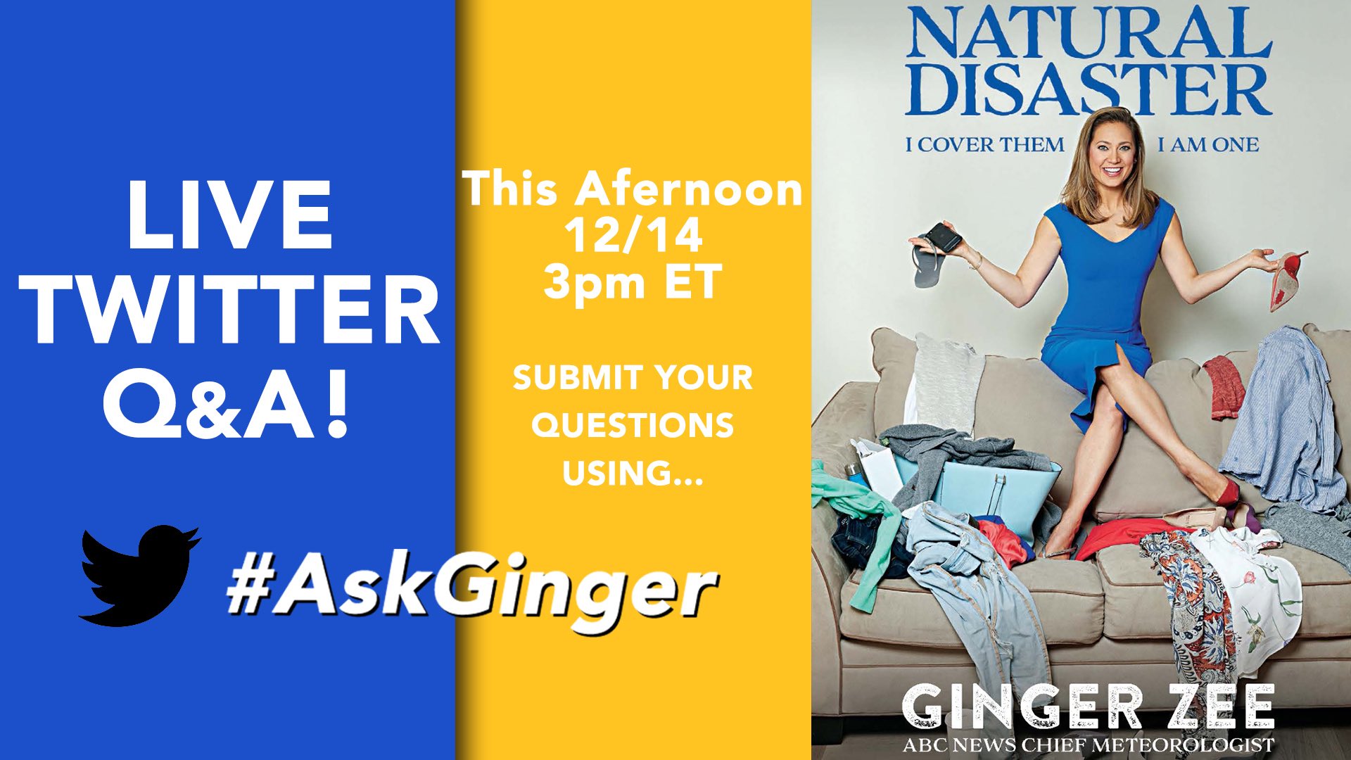ABC News chief meteorologist Ginger Zee pulls back the curtain on her life in Natural Disaster. ABC News chief meteorologist Ginger Zee pulls back the curtain on her life in Natural. Natural Disaster page 1 Select Voice.