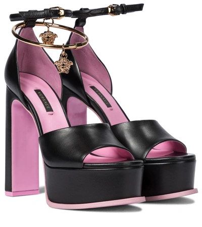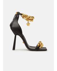 Shuffle similar products RELEVANCE LOWEST PRICE. Versace Medusa Aeternitas Leather Sandals - Farfetch. Striking sandals that elevate eveningwear with a bold shape high heel and platform.